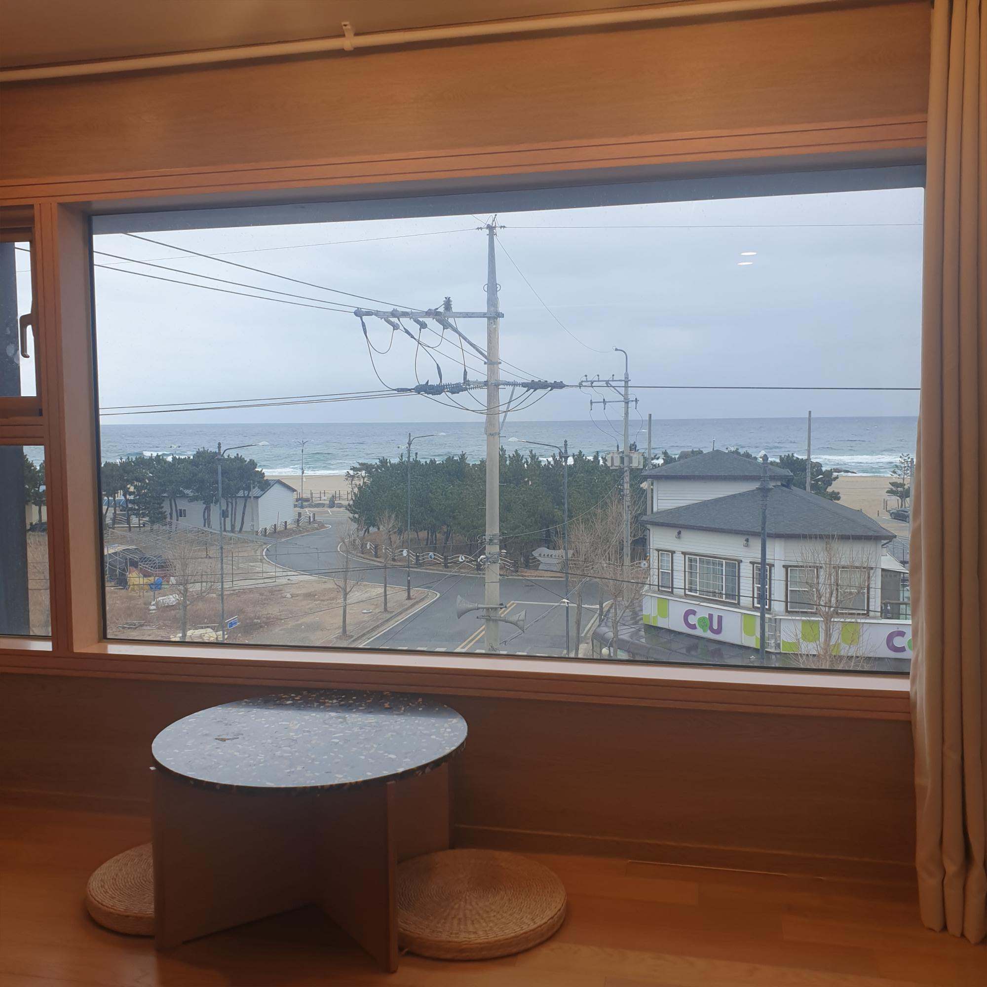 이렇게 좌식원형테이블에 앉아서 창밖을 구경할 수 있어요.
